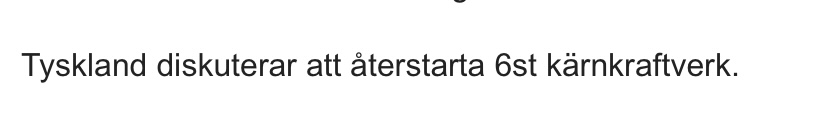 Tyskland diskuterar att återstarta 6st kärnkraftverk.
