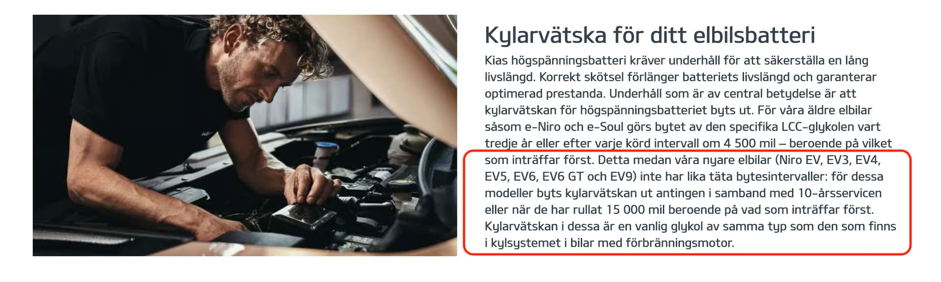 Alla behöver byta glykol – men det är 10 år eller 15 000 mil på EV3 till och med EV9.