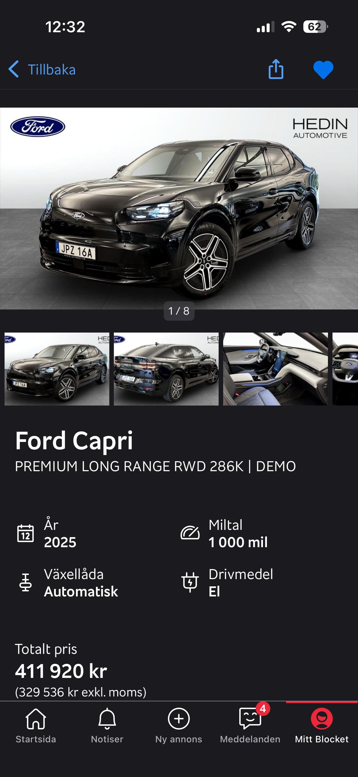 Hedin har nog inte lätt att få iväg Capri och Explorer. Typ denna Capri Demo med premium tycker jag är rätt mycket för pengarna. Nästan så man kan tro den är fel prissatt.