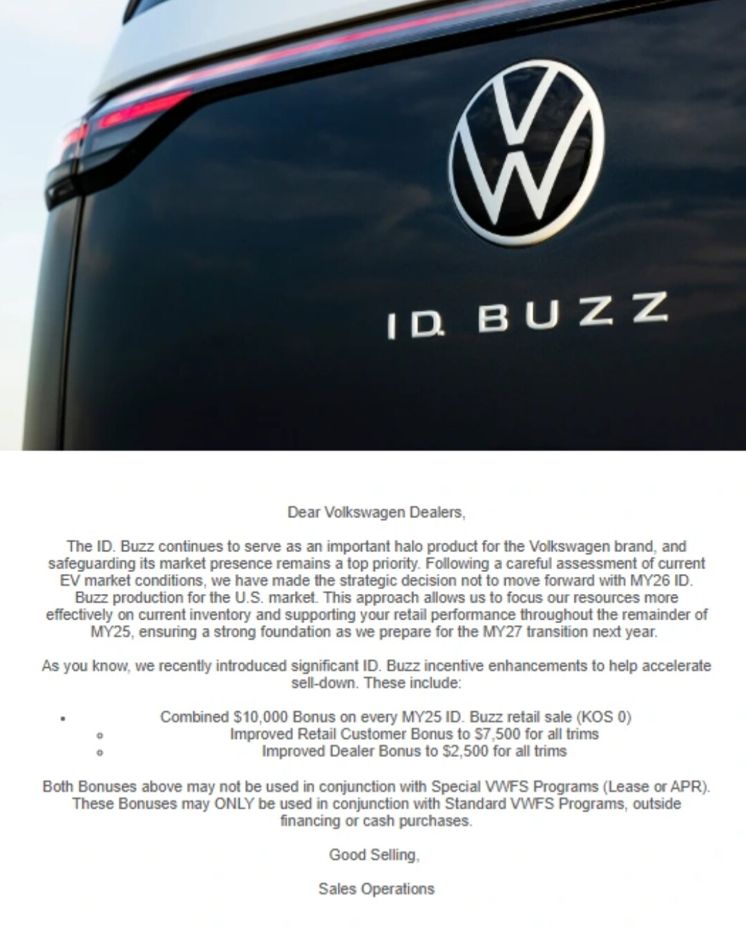 Som jag har förstått det säljer man ut lagerfordon av LWB SWB & GTX personbil ID.BUZZ sen pågår diskussioner internt om den återvänder under 2026 eller om man kommer att satsa på storsäljaren ID.BUZZ Cargo och fokusera på Nya e-Caravelle och Nya e-Transporter som EV för massorna en inte lika vattendelande design utan mer som Caravelle/Transporter alltid varit