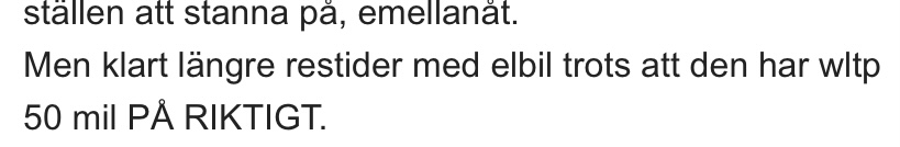 Men klart längre restider med elbil trots att den har wltp 50 mil PÅ RIKTIGT.