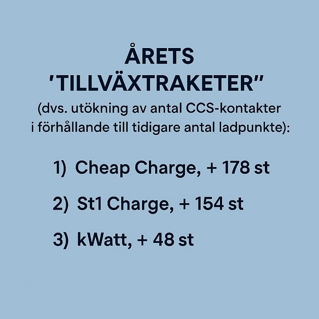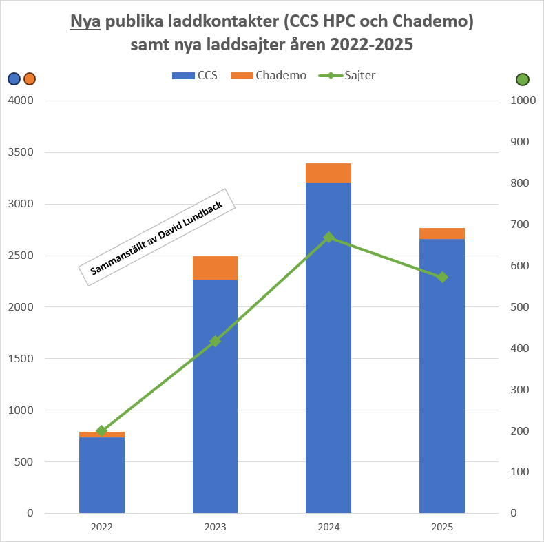 Nådens år 2025 är till ända och jag ska försöka mig på att summera och ge lite perspektiv på utbyggnaden av snabbladdning i Sverige. ![]()