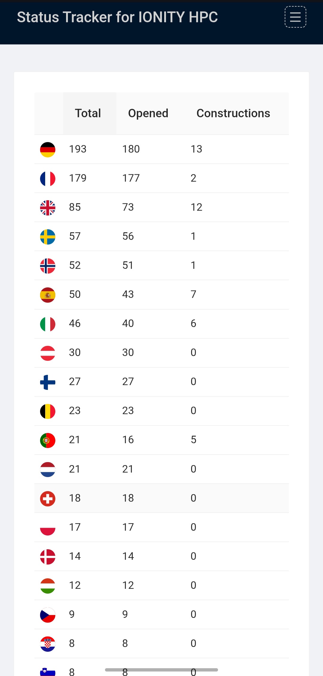 Totalt sett 500 nya laddsajter med 2413 nya CCS-kontakter (>100 kW), lägg därtill 57 uppgraderade sajter med 247 CCS-kontakter (>100 kW).
