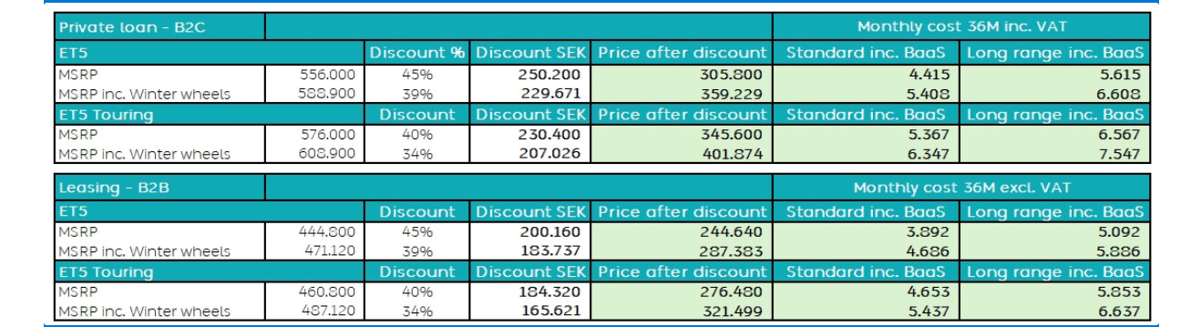 Jag syftade på privatleasing-erbjudandet, inte att köpa en Nio ET5T. Är för övrigt ett intressant ämne. Vad händer om en biltillverkare går i konkurs med deras bilar som är ute på leasing? I mitt fall med Zeekr så går jag via Arval som leasingpart så det är kanske inget problem om Zeekr inte finns längre för Arval äger bilen. Vet inte hur det är med Nio. De känns lite närmare slutkonsument med tanke på BaaS.