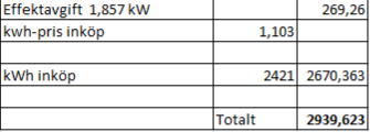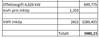 Räknar då endast elhandelspris och effektavgift då allt annat är lika för oss: