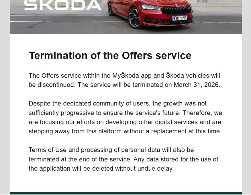Efter 4 år så lägger Skoda ner denna tjänst.