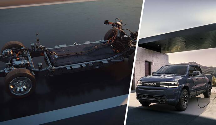 Inte helt rätt från USA finns Rivian Ford F150 Lightning Chevrolet Silverado EV GMC Sierra EV Denali Hummer EV bara RAM som väljer en egen väg med EREV RAM Trucks