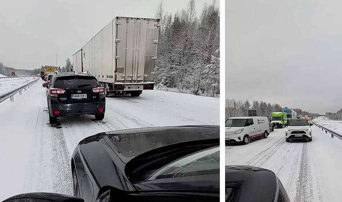 Ja man får väl använda dom grå cellerna , och stanna och ladda lite oftare bara , så man hela tiden har en rimlig buffert . Jag laddar normalt sett inte på jobbet , förutom om det finns vädervarningar utfärdade , då brukar jag ladda upp till 80% från ca 55-60% för säkerhets skull . Köra i sånt väder brukar ju vara väldigt tröttande , så lite extra raster behöver man ändå kanske . Men tänk så skönt om alla bilarna i kön vore elbilar , ingen risk för att få in en massa avgaser i kupén . Och tystnaden tystnaden , tänk att bara höra vindarnas sus , då somnar man nog gott under väntan .