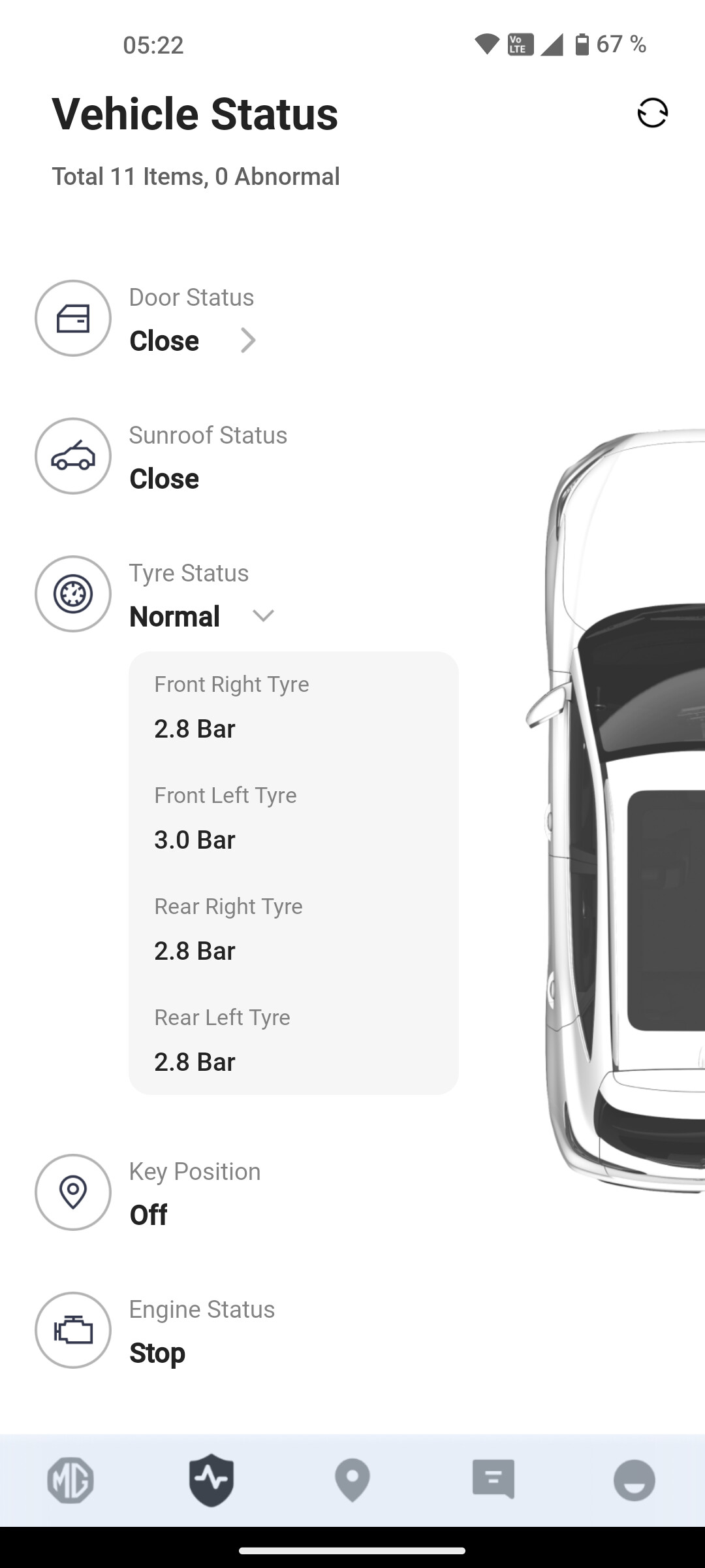 Man kan ju självklart se trycket i däcken i Teslaappen också, dock så är det ju inte live så att säga, utan senaste värdet vid körning, hur funkar det i “kinabilarna”?