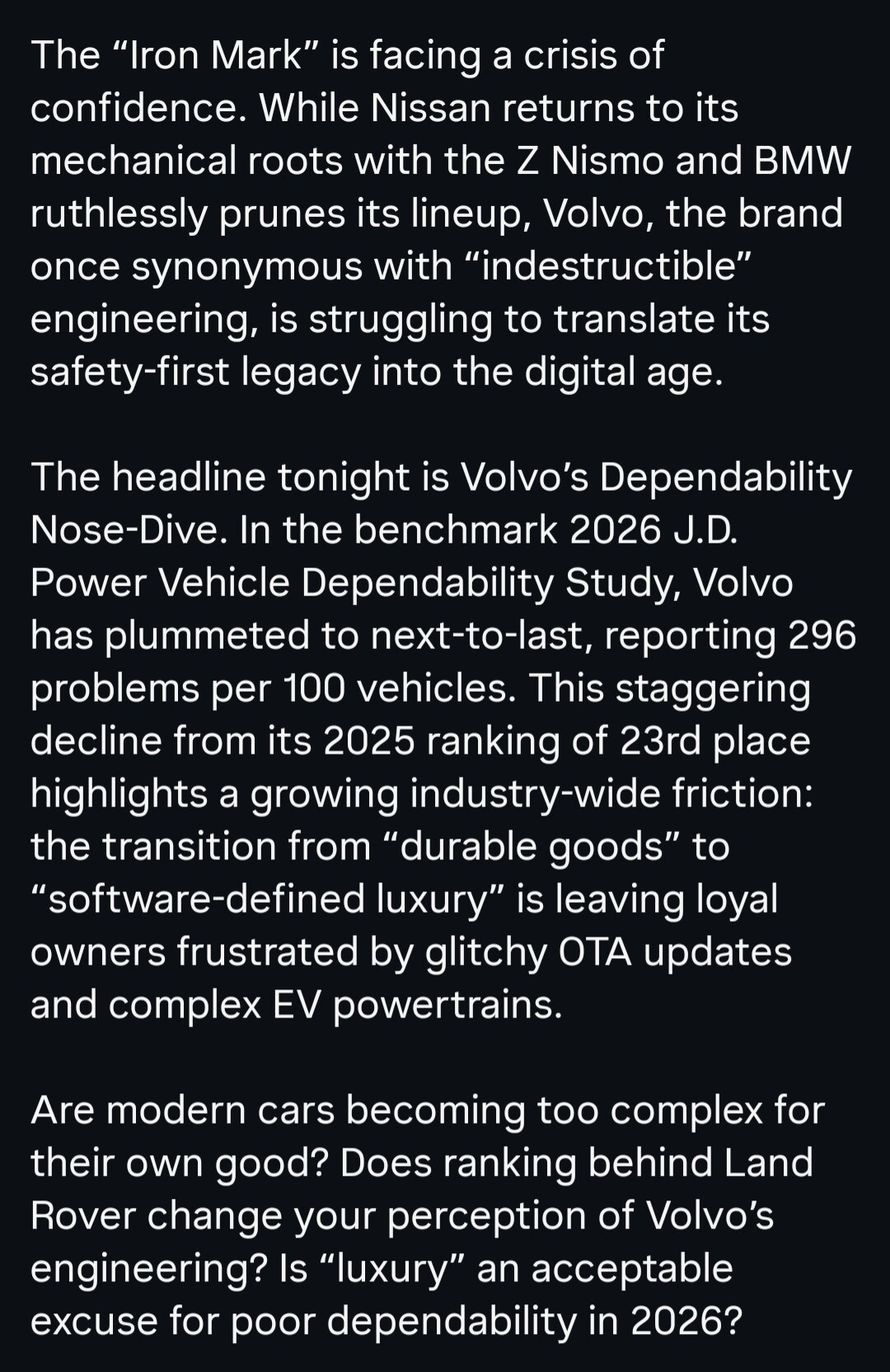 När jag jobbade på Nissan Design satt vi och lusläste när JD Powers släppte dom